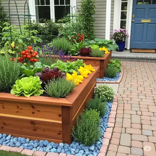 Why not get both beauty and deliciousness? Add raised garden beds to your front yard, perfect for growing your favourite veggies and herbs. Imagine stepping outside to snip fresh basil for dinner or pick ripe tomatoes. Edible gardens bring a lovely rustic charm and give you fresh produce, fitting right in with Melbourne's foodie culture.